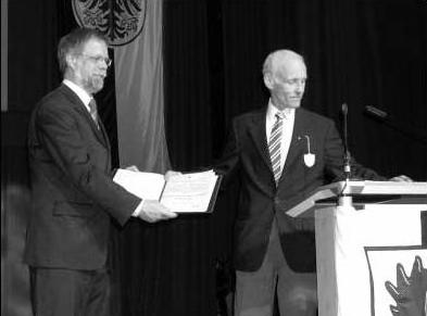 Goltz: Das Projekt „Preußisches Wörterbuch“ erstreckt sich über einen Zeitraum von 50 Jahren. Vier Forschergenerationen waren an seiner Entstehung beteiligt. Insofern stehe ich hier stellvertretend für all die Gewährspersonen, die zu der einzigartigen Materialsammlung beigetragen haben, und für die insgesamt elf Redakteure, die seit 1974 ihren oft staubtrockenen Beitrag zum Gesamtwerk geleistet haben. Ostpreußisches Platt, das Natangische, das Samländische, aber auch die mitteldeutschen Mundarten des Ermlandes und des Oberlandes – diese Sprachformen verklingen. Die jüngsten Sprecher sind heute etwa 75 Jahre alt. Ihr weiches und breites Platt ist in der Öffentlichkeit kaum mehr zu hören. Doch es gibt auch Ausnahmen. Bei mir selbst ist es gerade mal sieben Wochen her. Genauer: als sich in Bielefeld der Arbeitskreis „Ostpreußisch Platt“ zu seinem 20jährigen Bestehen versammelte. Alles lewe Lied, de sek freie, wenn se sek weddersehne, de schabbere on singe on de an ehre Sproak fasthole. Met Stolt. Auch von den plattdeutschen Texten, die aus dieser Gruppe hervorgegangen sind, hat das Wörterbuch profitiert. Nun gibt es ja Zeitgenossen, die nach dem Sinn eines Wörterbuchs für eine verklingende Sprache fragen: Was soll denn die ganze Anstrengung? Was sollen zwei Millionen Wortzettel und Hunderte Stunden von Tonbandmaterial? Was soll ein dickes, sechsbändiges Wörterbuch mit über 100.000 Stichwörtern, mit Hunderten von Sprachkarten und detaillierten Abbildungen, wenn niemand mehr diese Sprache spricht und niemand in dieser Kultur lebt? Solange die Deutschen den Anspruch erheben, als Kulturnation zu gelten, solange ist eine solche Frage nicht zulässig. Denn das Wissen um die sprachlichen und kulturellen Wurzeln ist das mindeste, was wir an die nachfolgenden Generationen weitergeben können. Ein Wörterbuch versammelt kompakt das gesamte in Sprache gekleidete Wissen einer Landschaft. Das ist ein hoher Anspruch, übersteigt dieses Wissen doch all das, was ein einzelner Mensch je erfahren kann. Es ist eine Art kollektives Gedächtnis. Und für viele, die es benutzen, ist es eine Brücke in eine andere Kultur. Und genau das ist auch unser Anspruch: daß Forscher, aber auch andere interessierte Menschen in Deutschland und auf der ganzen Welt in 100 Jahren einen Schlüssel zur Hand haben, wenn sie sich mit dem Alltag in Ost- und Westpreußen beschäftigen wollen. Damit diese ... aber begreifen können, was sich hinter Wörtern wie Schocke, Kruschke oder Twelfte verbirgt, brauchen sie unser Wörterbuch. Wir dokumentieren alle mundartlichen Wörter, wie sie in den einzelnen Landschaften ausgesprochen werden, wie stark sie verbreitet waren und was genau sie bedeuten. Und wir belegen die Verwendung eines einzelnen Wortes im Sprachgebrauch: in festen Wendungen, in Redensarten, Wetterregeln, in volksmedizinischen Lehrsätzen oder Abzählversen. Daß die ost- und westpreußische Kultur noch lange nicht endgültig abgeschlossen ist, sondern daß sie in vielen Lebensbereichen weiter existiert, wissen Sie besser als ich. Bei uns zu Hause backen wir in der Weihnachtszeit Kekse nach einem Rezept von Tante Martha. Aus Elbing. Die Speisenzubereitung mit Schmand hat ihren festen Platz in der deutschen Küche. Und sogar der Streimellachs ist seit einigen Jahren wieder im Handel erhältlich. Das „Preußische Wörterbuch“ ist in seinem alphabetischen Durchlauf nahezu abgeschlossen. Es fehlt noch eine kleine Lieferung, aber die wird in den nächsten Wochen erscheinen, so daß dann die sechs Bände komplett sind. Was dann aber fehlt, das ist ein Begleitband, der die Benutzer mit den notwendigen Informationen über die preußische Sprachlandschaft informiert und ihnen das Suchen im Wörterbuch ermöglicht. Und damit habe ich auch bereits angedeutet, wofür das Preisgeld verwendet werden soll. Die Akademie der Wissenschaften und der Literatur in Mainz hatte bis Ende 2003 das „Preußische Wörterbuch“ finanziell getragen. Anschließend aber haben wir Notbehelfe gebaut, die uns einen Abschluß überhaupt ermöglichten. Und nun soll mit Hilfe des Preisgeldes auch noch der Begleitband entstehen. Erst dadurch erhält das Werk seine wirkliche Abrundung. Dafür, daß Sie uns diese Möglichkeit eröffnen, sage ich von Herzen Dank.