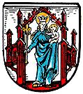 Mutter Gottes in blauem Gewand mit dem Kind auf dem linken Arm, in der Rechten