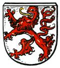 Das Wappen zeigt in Silber einen nach rechts steigenden roten Löwen.