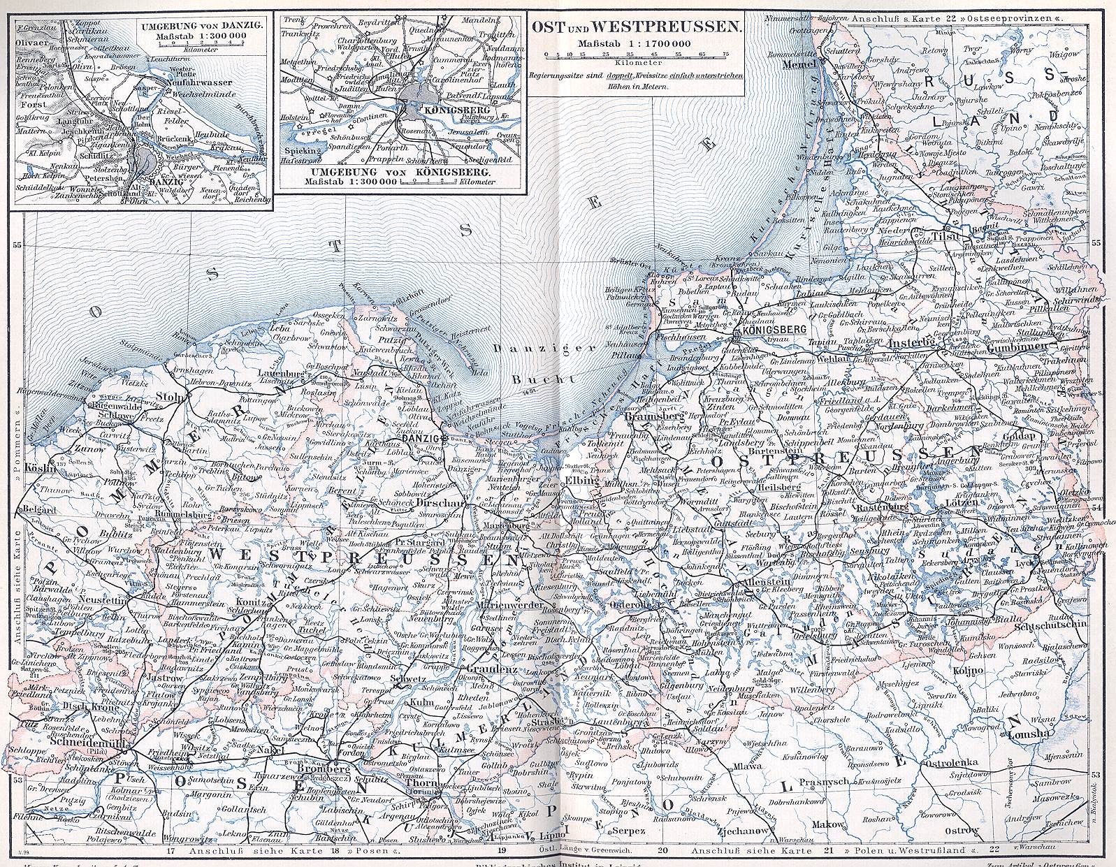 Übersichtskarte West- und Ostpreußen 1896
